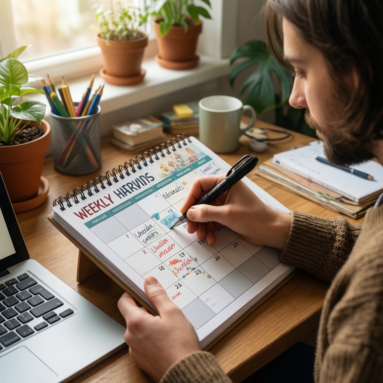 2. Назначьте каждой привычке фиксированный день. Привязка к дню снижает "торги с собой". Ставьте простые задачи на загруженные дни и более длинные - на спокойные.